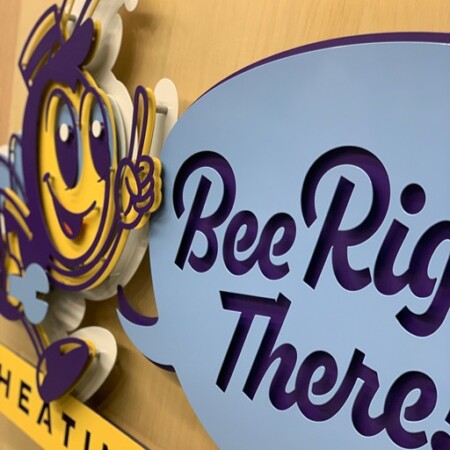 We can fabricate logo signs in virtually any size, from small office wall plaques to large exterior building signage. Let us know your dimensions and we’ll tailor the design.